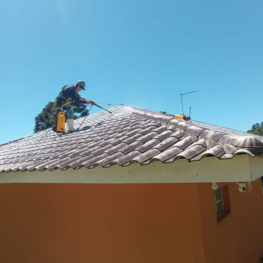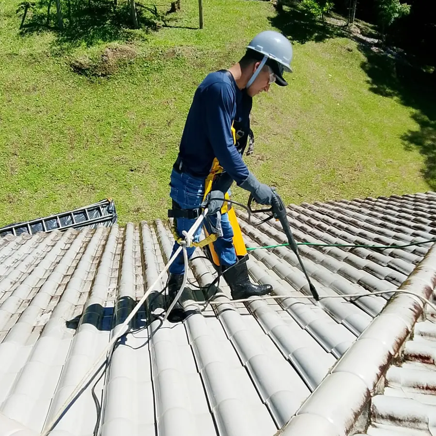 A limpeza de telhados consiste na remoção de sujeira, algas, limo e detritos que se acumulam nas telhas ao longo do tempo. Essa manutenção preserva a aparência do imóvel, evita infiltrações e aumenta a vida útil das telhas.